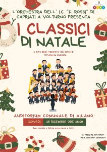 AILANO – Auditorium comunale: “I CLASSICI DI NATALE” proposti dall’Orchestra dell’I.C. “F. Rossi – Capriati a Volyurno