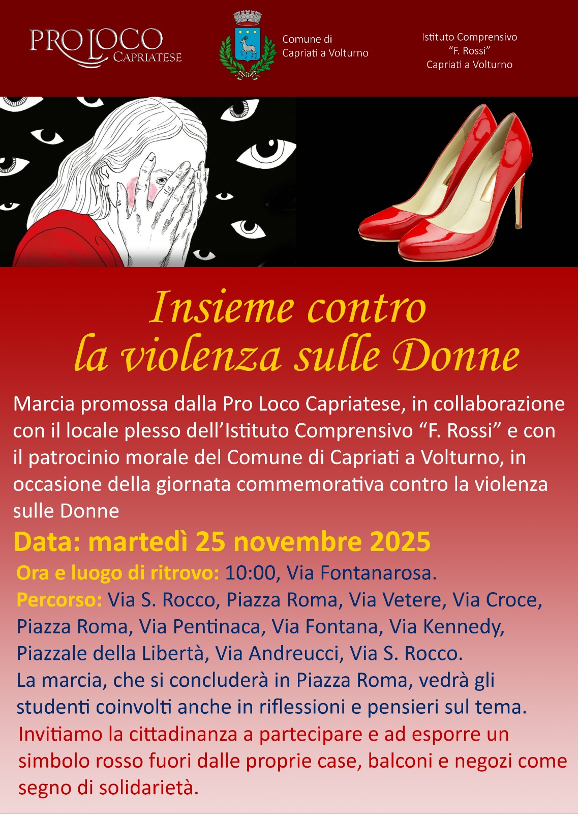 10:00 - Marcia promossa dalla Pro Loco Capriatese in collaborazione con il locale plesso dell'Istituto Comprensivo "F. Rossi" e con il patrocinio morale del Comune di Capriati a Volturno.