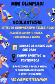Attività complementari di educazione fisica – Programmazione “Mini olimpiadi scolastiche” – 25 maggio 2024 presso il campo sportivo di Fontegreca